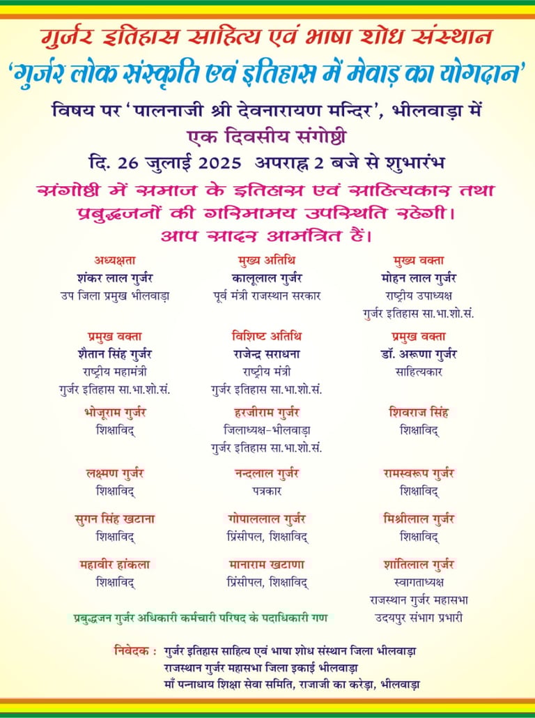 गुर्जर लोक संस्कृति एवं इतिहास में मेवाड़ का योगदान एक दिवसीय संगोष्ठी भीलवाड़ा